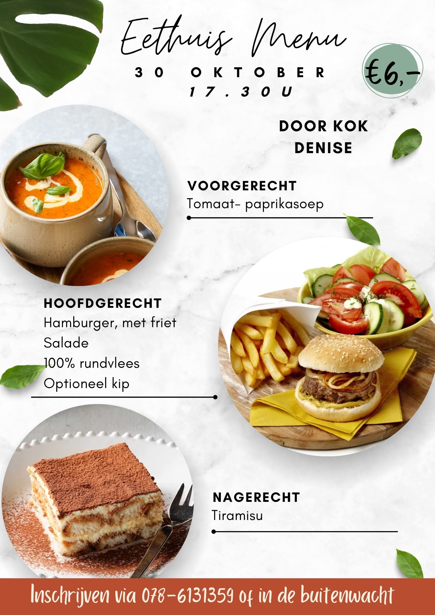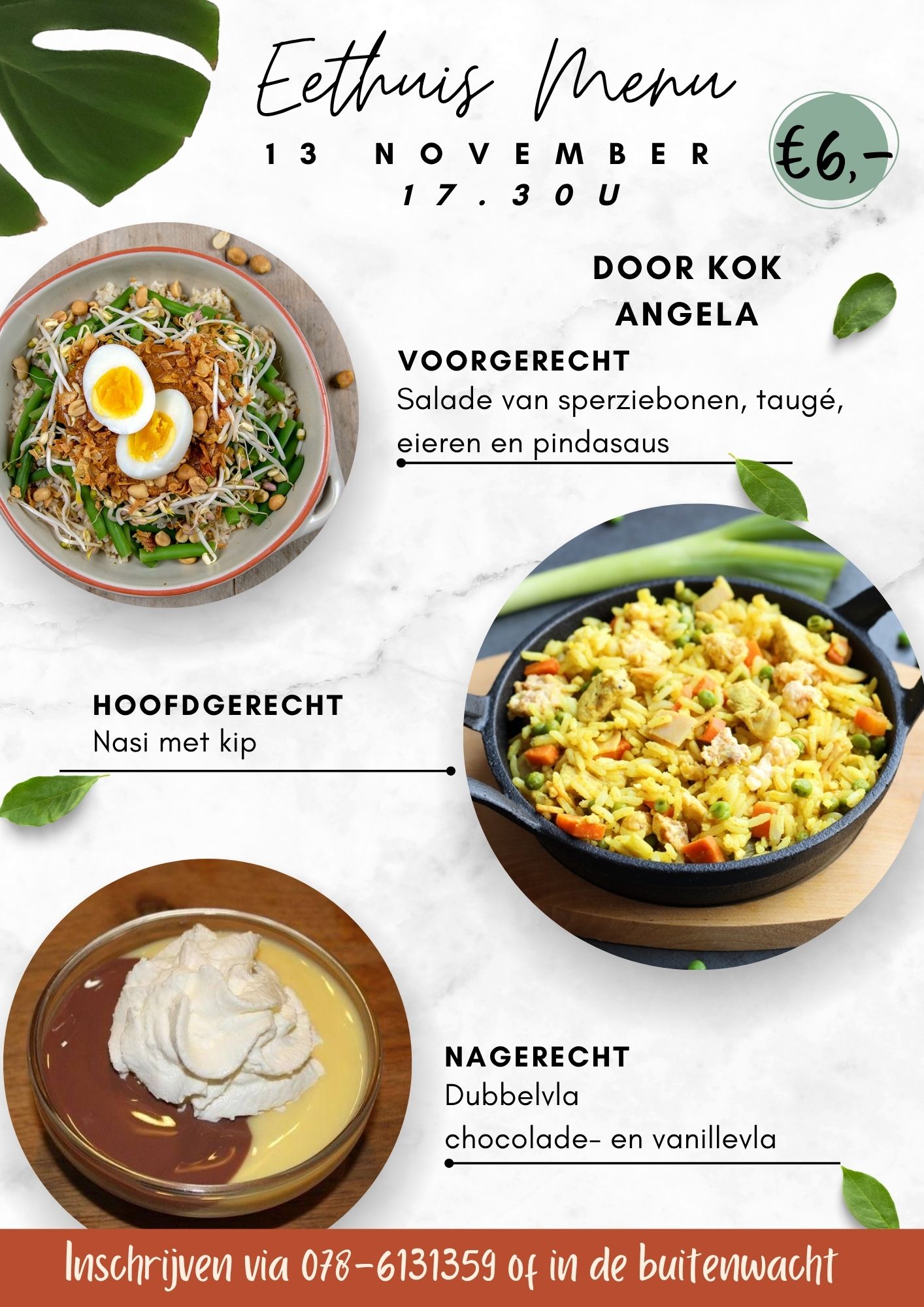 Dit 3-gangenmenu kost €6,- per persoon. Kinderen eten voor halve prijs mee!